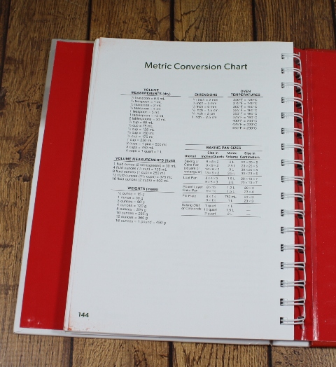 The categories in the book include: Cathy's Favorites; Soups, Stews and Chilis; Chicken Favorites; Bountiful Beef; Pleasing Pork; Spectacular Sides; and Sweet Treats. In the back of the book, I found an alphabetical index and a metric conversion chart.