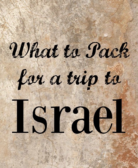 Israel Ministry of Tourism to travel to the evangelical highlights across the country. In just a weeks, I'll be off on my grand adventure! Packing for an international trip requires extra research, since the customs are often different from what I'm accustomed to in America. I've put together a list of items I'll need for my journey and thought I'd share it with you. My trip will span eight days. If I've missed something that you know I'll need to pack, please list it in the comment section below.