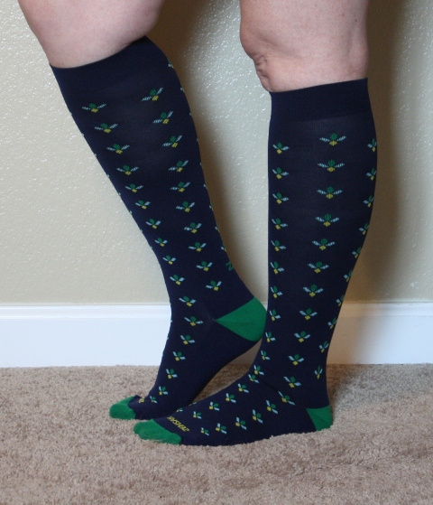 These compression socks are very soft, and yet they are just stretchy enough to allow you to put them on. They firmly hug my feet, ankles, and calves. They are very comfortable to wear, even all day, and I could actually feel a difference when I was wearing them. And I really dig the Ditsy Flower pattern!
