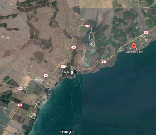 Israel was the town of Capernaum. It's just east of Tabgha, along the northern coast of the Sea of Galilee, and was the home of several of Jesus' disciples. Capernaum was the center of Jesus' ministry and he taught in the synagogue there.