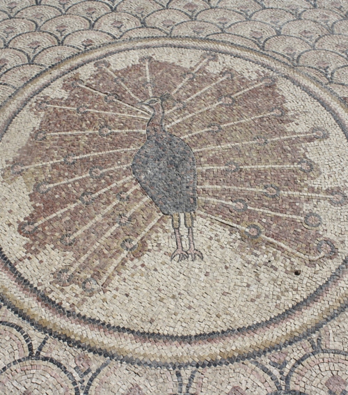Just inside the gates of this excavated town is a beautiful peacock mosaic. Peacocks are indigenous to India and the Bible tells us that peacocks were brought to Israel for King Solomon: