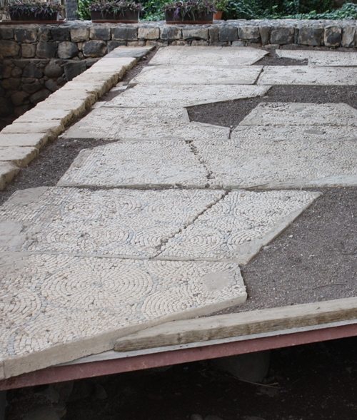 The mosaic floors, below, were also excavated at the site.