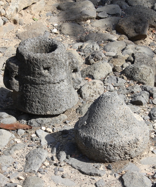 The post in the photo above would have helped support the roof. Below is a storage vessel and its lid, found in one of the houses.