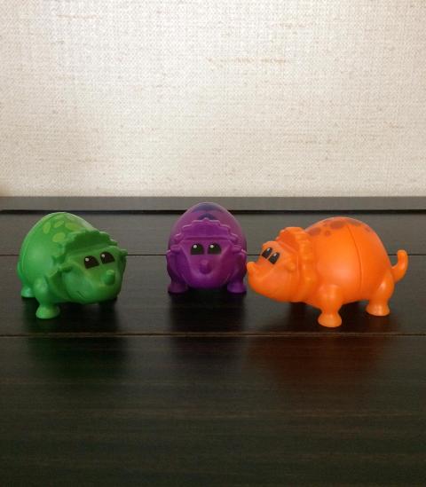 Notice too the spots on the dinosaurs' backs feature different shapes like stars, rectangles, and circles. Children learn best through play, and incidental learning like discovering the different shapes is an exciting finding for them. Learning colors with dinos is fun, and so is mixing and matching them!