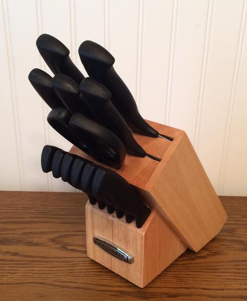 The Farberware Knife Armor Cutlery Set looks fabulous in my farmhouse kitchen and will go great with any decor. I love the compact design of the wood block since I have a small kitchen, and this wood block is about an inch smaller in width than my last set of Farberware knives. This is a great set!