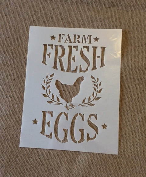 Once I received my stencils, I had to plan out my projects. I didn't want my projects to look like the ones everyone else can buy on the internet or in the store. For my first project, I used a leftover piece of thin plywood underlayment from our bedroom project of faux shiplap. It's 6" x 12" and I first painted it with one thin layer of white interior paint. I used the Farm Fresh Eggs stencil from Stencil Revolution and did a single layer of black with the stencil. When the black paint dried, I distressed the lettering with a sandpaper block, then outlined the letters and images with a smoky blue paint. I love how it turned out!